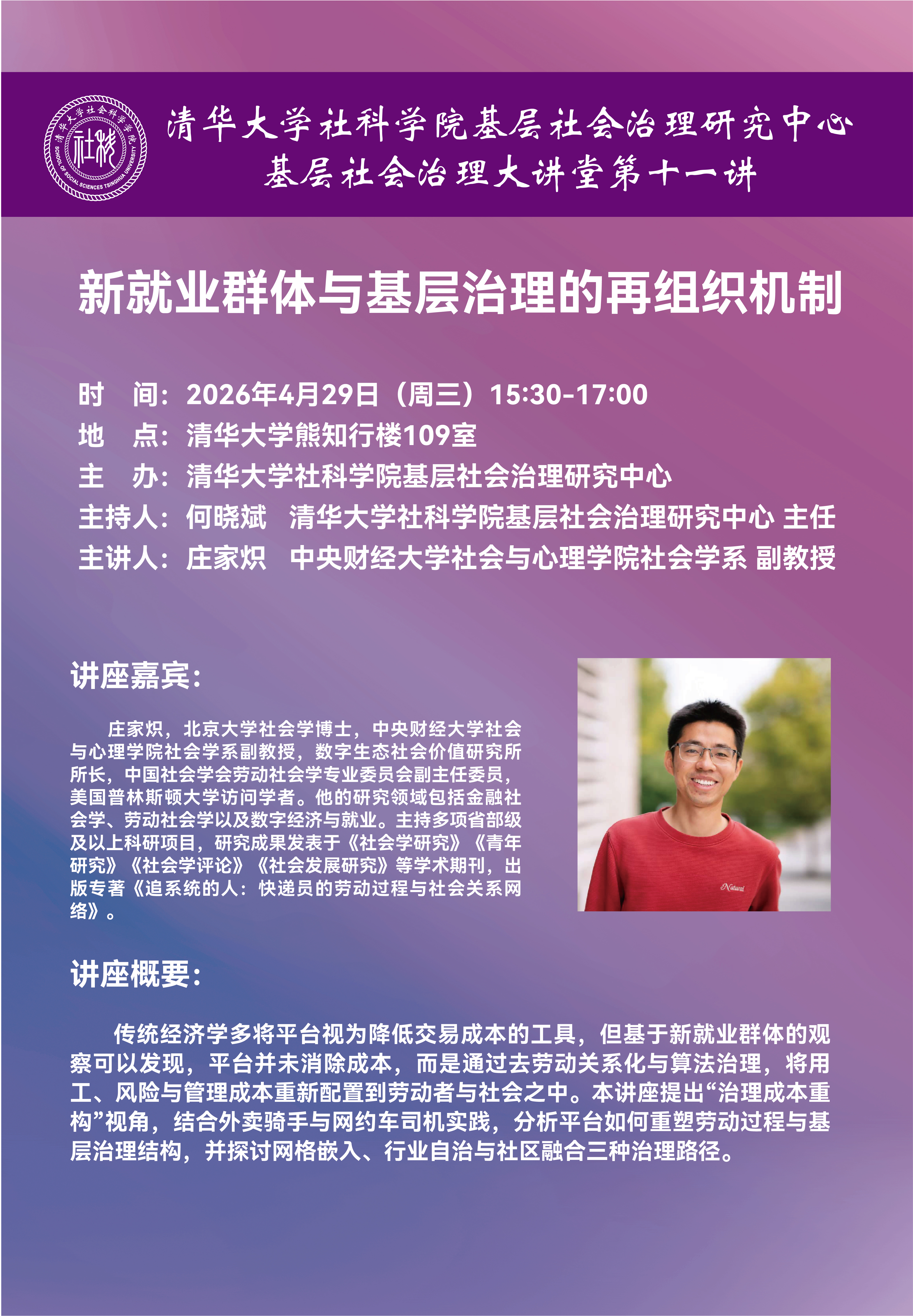 讲座题目:新就业群体与基层治理的再组织机制