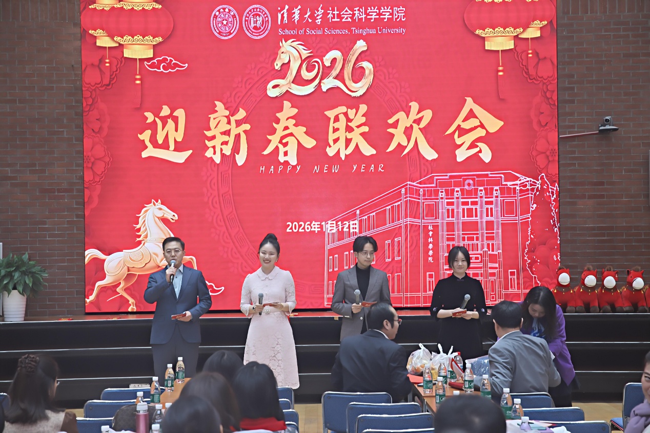 1月12日下午,社科学院在熊知行楼多功能厅举行2026年新春联欢会。社科学院院长王天夫,学院党委书记孟天广,学院副院长孙秀林、张开平,党委副书记李帮喜出席活动。近200名教职工欢聚一堂,以歌曲、舞蹈、相声、诗朗诵等形式送别很不平凡的2025年,迎接充满挑战的2026年。社会学系李晓谕、政治学系孙宇辰、国际关系学系唐新华、经济学研究所陈尚容等四位教师担任主持人。